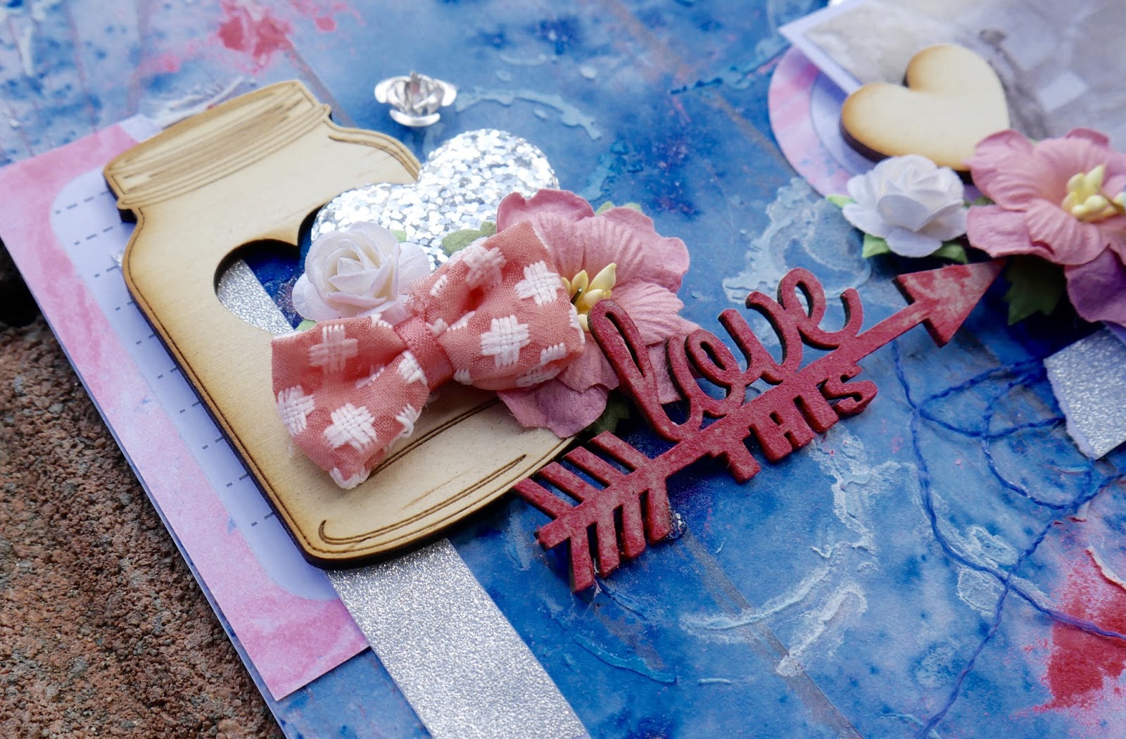 The papers in this range are all so pretty it was hard to chose which one to use first, but this gorgeous Peachy coloured paper with the shinny gold writing won out, LOVE it! I added some Snow White Colour Blast Texture Paste through my favourite Kaiser Bubbly Mini Template just to keep that sparkly look flowing throughout my page! I embellished the page with lots of matching embellishments from this collection and finished it off with a couple of flowers from my stash.....