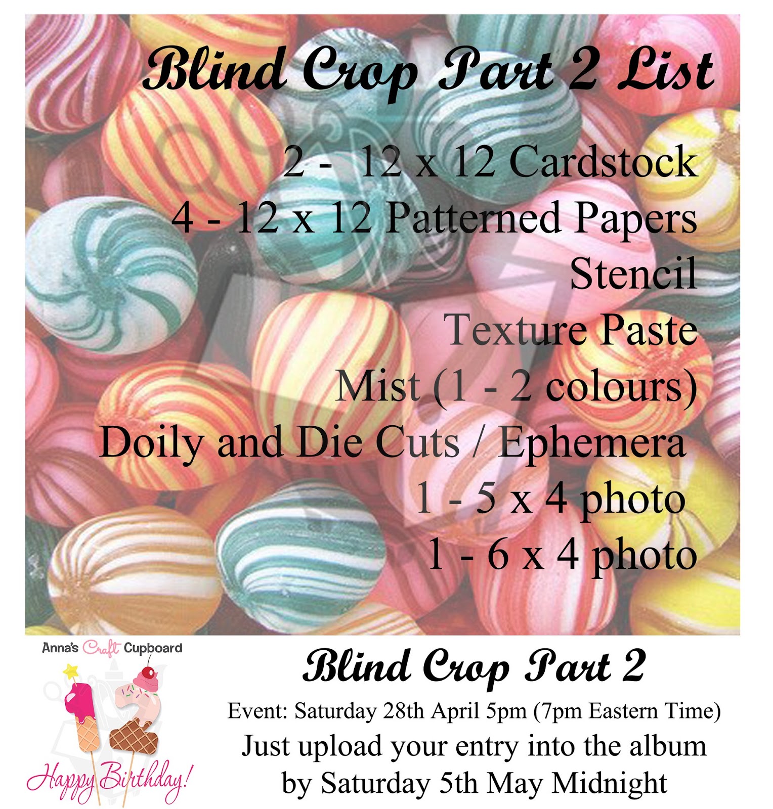I hosted my first ever Blind Crop and also the first ever Double Page Blind Crop, I won't say I wasn't a tad nervous but I also really enjoyed it and look forward to hosting another one again. Below is the lists that you needed for each page.