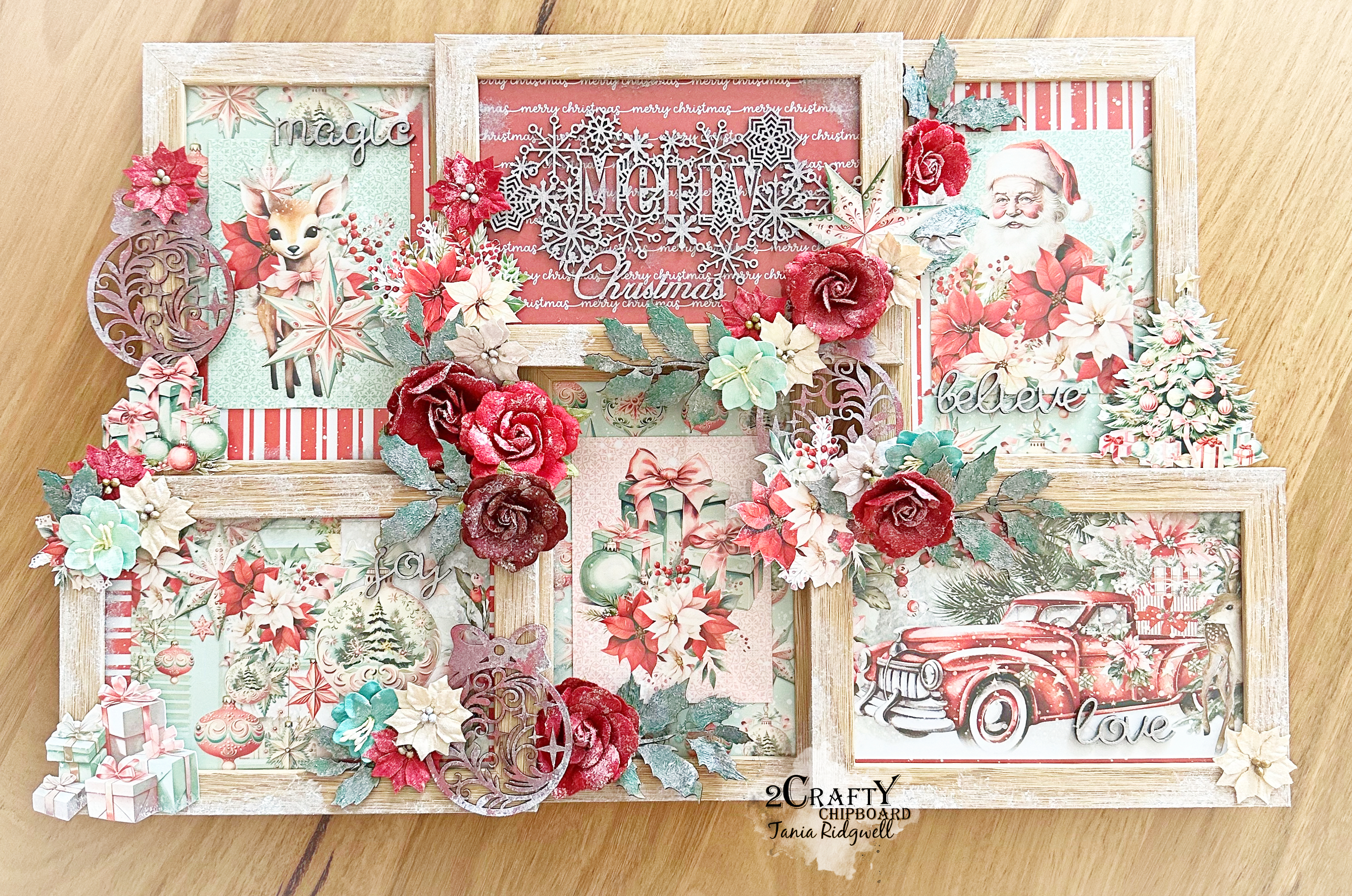 I have used the gorgeous new Mintay Merry & Joy Christmas Collection to decorate each of the inside photo frame panels.